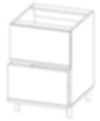 Ühe mooduli laius on 60cm. Näiteks kui soovid 180cm laia kööki (nagu näidisel), siis vali 3 ühikut töötasapinda ja soklit. Kui köök on mõlemast otsast nähtav, siis vali 2 otsakülge jne.